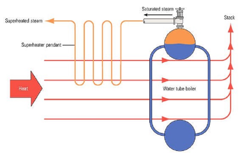 Bộ quá nhiệt: Thiết bị này được đặt sau buồng sinh hơi. Nó dùng nguồn nhiệt gián tiếp hoặc trực tiếp từ lò đốt để “làm nóng thêm” hơi.